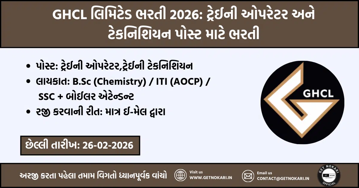 આ લેખમાં અમે GHCL ભરતી અંગેની તમામ ઝીણવટભરી વિગતો જેવી કે શૈક્ષણિક લાયકાત, વય મર્યાદા અને અરજી કરવાની સાચી રીત વિશે માહિતી આપી છે. અરજી કરતા પહેલા આ સંપૂર્ણ પોસ્ટ વાંચવી અનિવાર્ય છે જેથી તમારી અરજીમાં કોઈ ભૂલ ન રહી જાય અને રિજેક્ટ થવાની શક્યતા ન રહે.