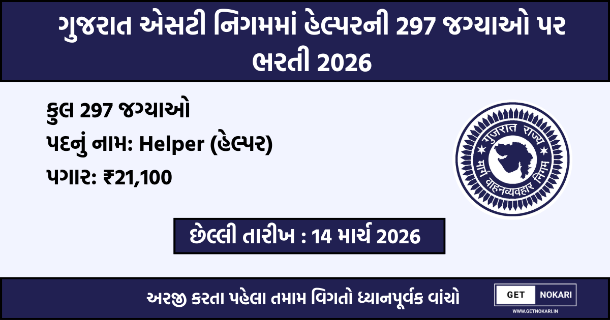 ગુજરાત રાજ્ય માર્ગ વાહન વ્યવહાર નિગમ (GSRTC) દ્વારા ફરી એકવાર સરકારી નોકરીની તૈયારી કરતા મિત્રો માટે સારા સમાચાર આવ્યા છે. ખાસ કરીને જે મિત્રો ટેકનિકલ ક્ષેત્રમાં પોતાનું કરિયર બનાવવા માંગે છે, તેમના માટે GSRTC માં હેલ્પર તરીકે જોડાવાની આ એક ઉત્તમ તક છે. આ ભરતી ખાસ કરીને દિવ્યાંગ ઉમેદવારો માટે એક સ્પેશિયલ ડ્રાઈવ તરીકે બહાર પાડવામાં આવી છે, જેમાં યોગ્ય લાયકાત ધરાવતા મિત્રો ઓનલાઈન અરજી કરી શકે છે.